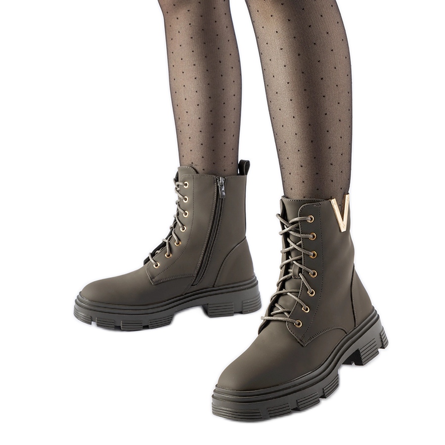 Stylish Khaki Fru boots are the perfect combination of urban elegance with everyday functionality. The matte finish and the timeless, dark green shade add the character of any stylization, and the insulated interior provides comfort and protection against cold. A round nose and a flat heel make the shoes comfortable even during a long day, and lacing and zipper allow a perfect fit.