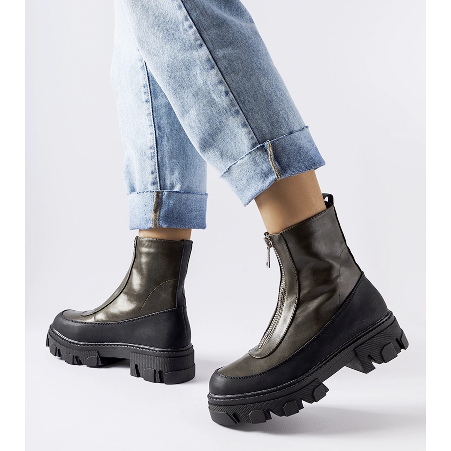 Inna marka Dark green massive ankle boots with a Morley zipper