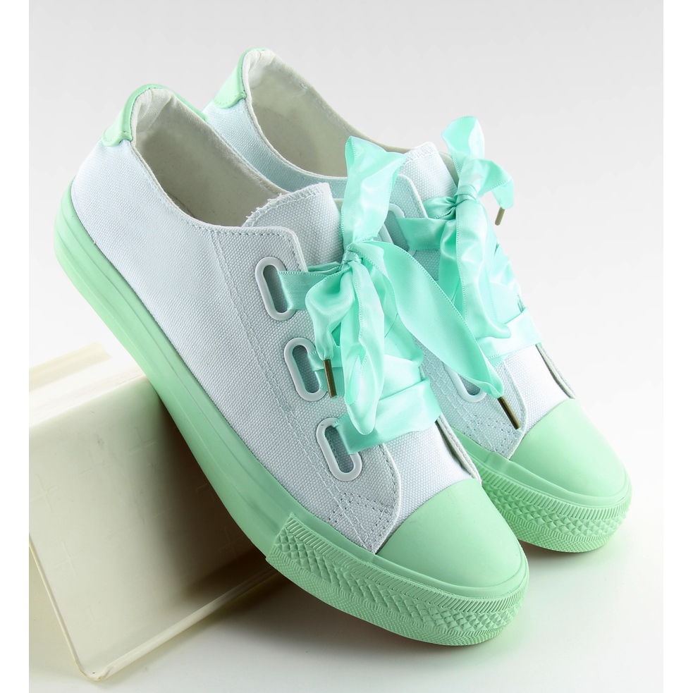 Inna marka DC11 WHITE / GREEN white and mint sneakers with ribbons
