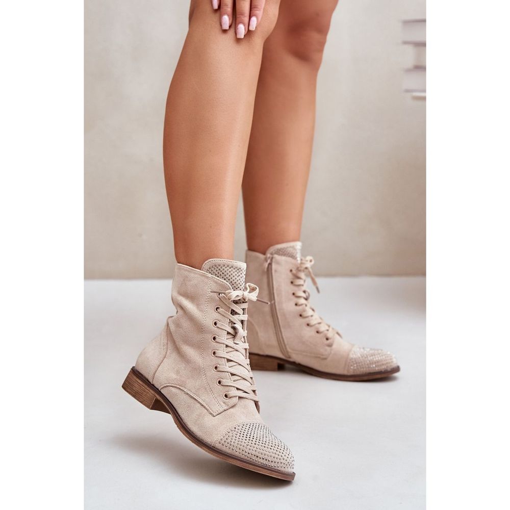 Details: Decorated Flat Heel Boots, Eco Suede, Warm, Light Beige Ellieo