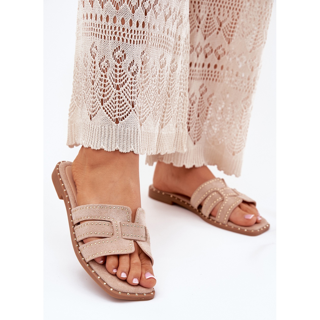 Discover elegance and comfort for warm days with our decorated flat heels in a shade of beige. These unique women's flip flops, made of eco suede, combine fashionable design with the highest functionality, becoming a great choice on a daily basis.