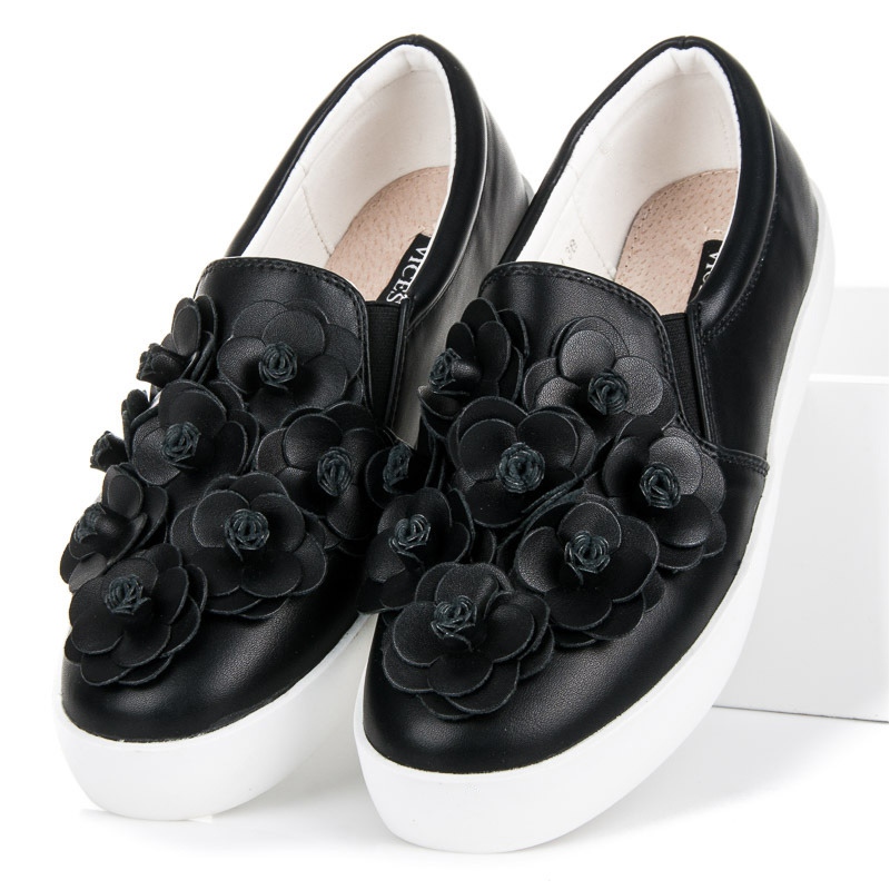 Discover exceptional elegance and comfort with black Vices slip-ons, which will certainly become an inseparable element of your wardrobe. These spectacular shoes perfectly match various styles, both everyday and more elegant. Their delicate decorations in the form of original, small flowers add subtle charm to them, distinguishing them from other models.