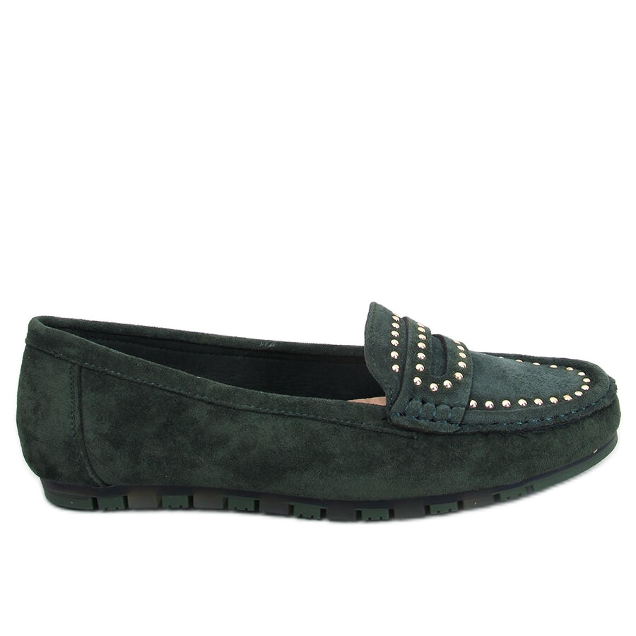 Elegant and comfortable loafers Deys Green are a everyday offer for women who value a classic cut with a fashionable accent. Made of ecological suede, decorated with subtle studs and rhinestones creating a unique pattern, they will perfectly complement both casual and more elegant stylizations.