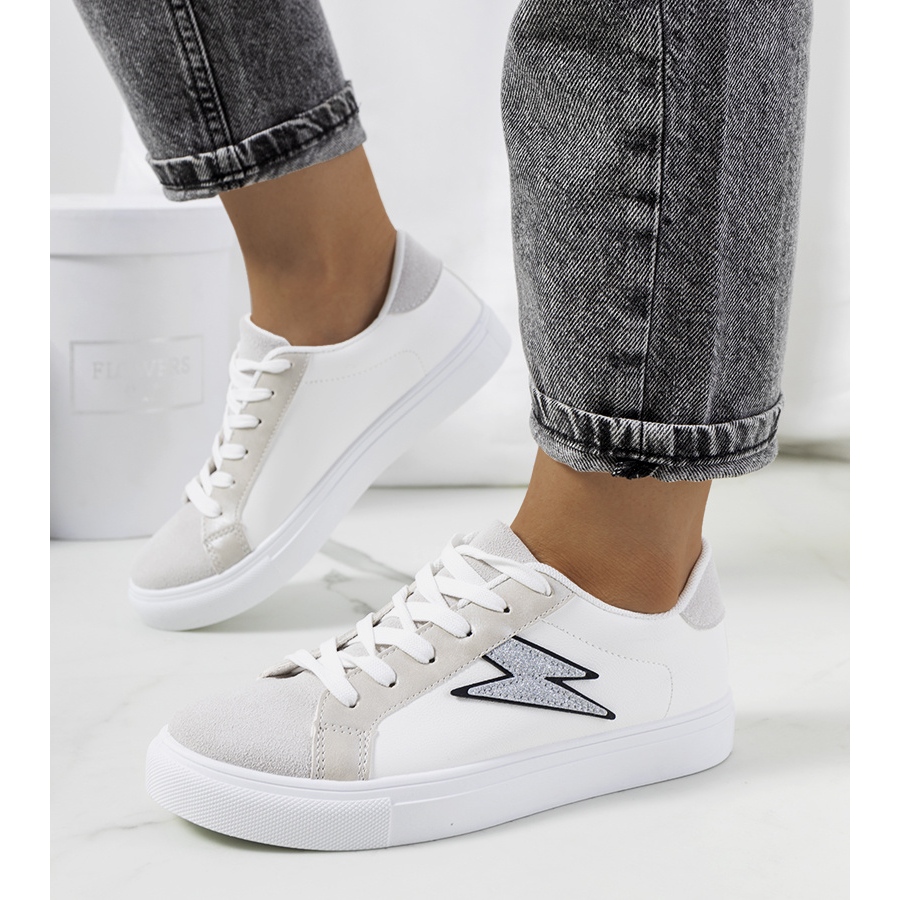 The upper of the sneakers is made of ecological leather, decorated with a subtle crocodile-style pattern, which gives them a unique character. The colors - white with a bit of silver and gray - make the footwear fit perfectly with both casual and more elegant outfits.