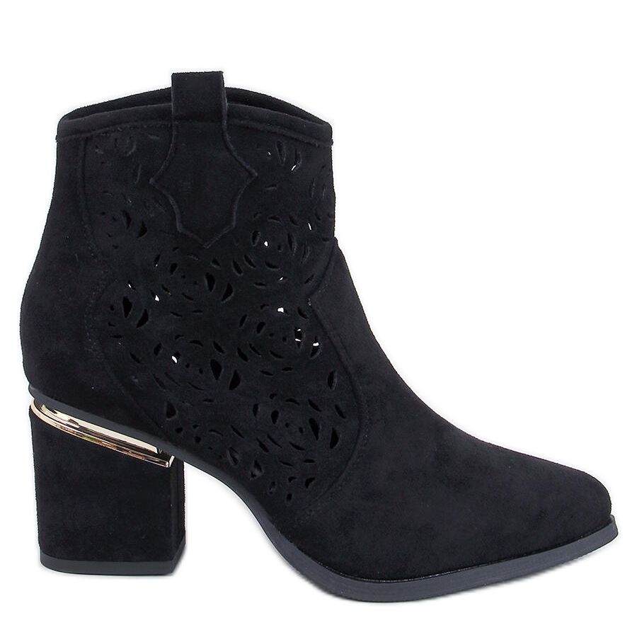 Inna marka Donovan Black Openwork Heeled Ankle Boots