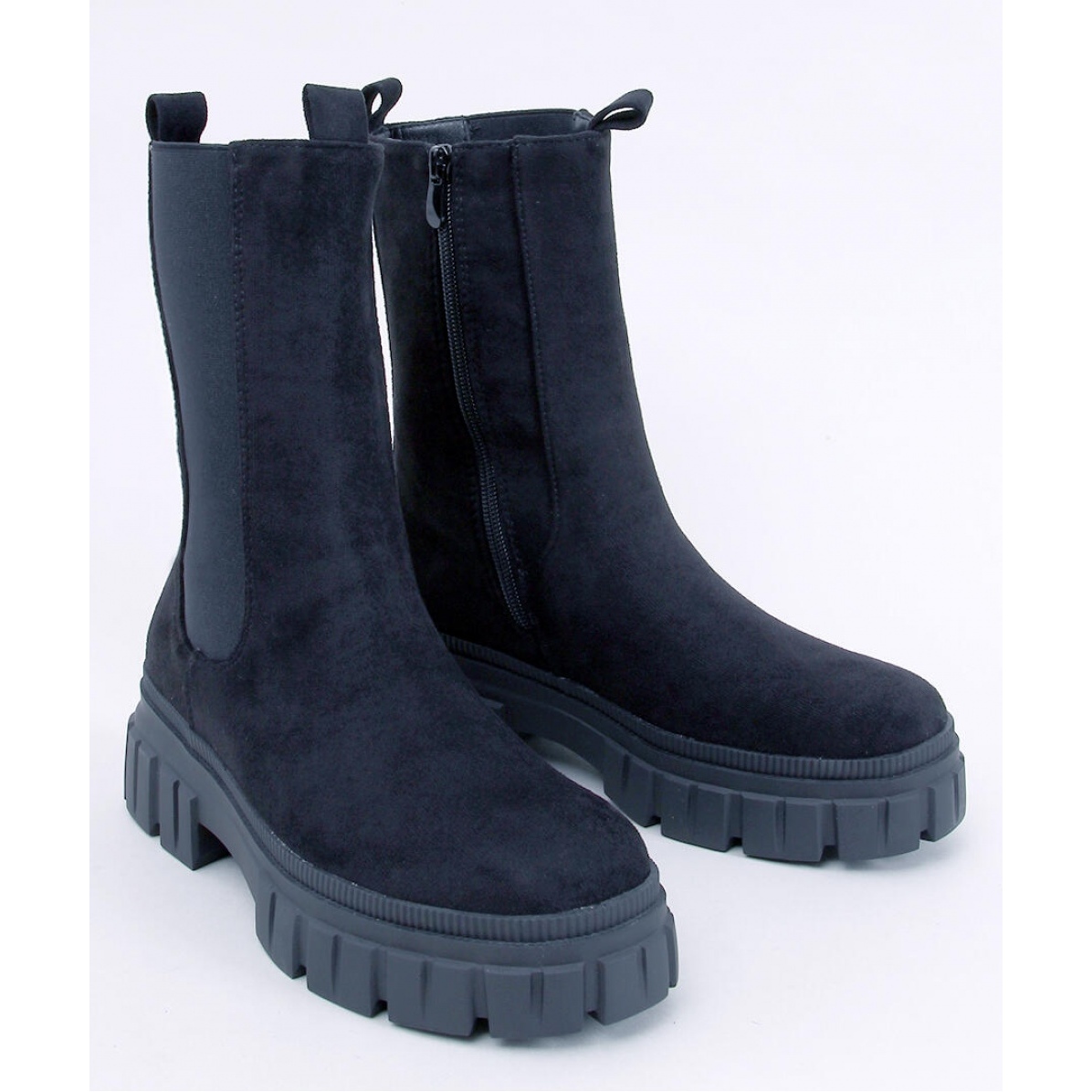 Discover style and comfort in one thanks to high dowel dowel black from inello. These elegant, black women's boots delight with their fashionable cut and a high upper, which is distinguished by modern design. Made of ecological suede, they combine aesthetics with attention to the environment.