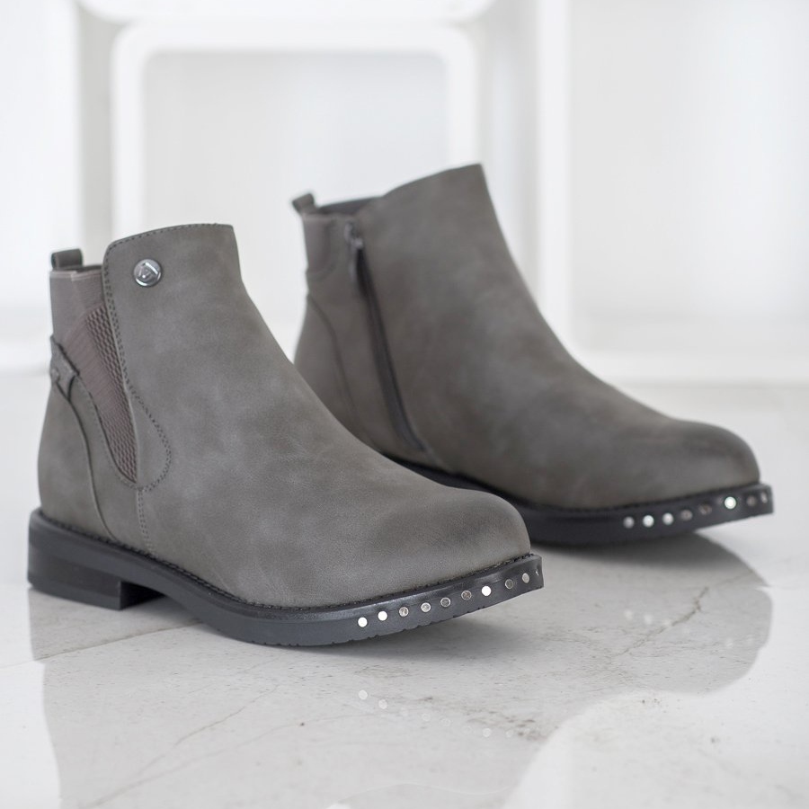 The gray Goodin ankle boots also stand out with subtle silver rhinestones, which give them originality and elegance. The simple, timeless design of these shoes will make them an ideal addition to many casual styles.