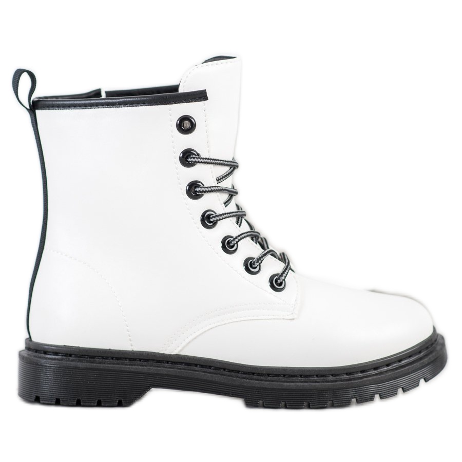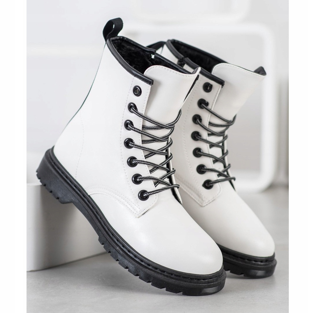 Discover stylish eco-leather combat boots from SHELOVET - the perfect choice for women who value fashion and everyday comfort. These unique boots in contrasting black and white will be a perfect complement to your wardrobe, giving it a unique character.