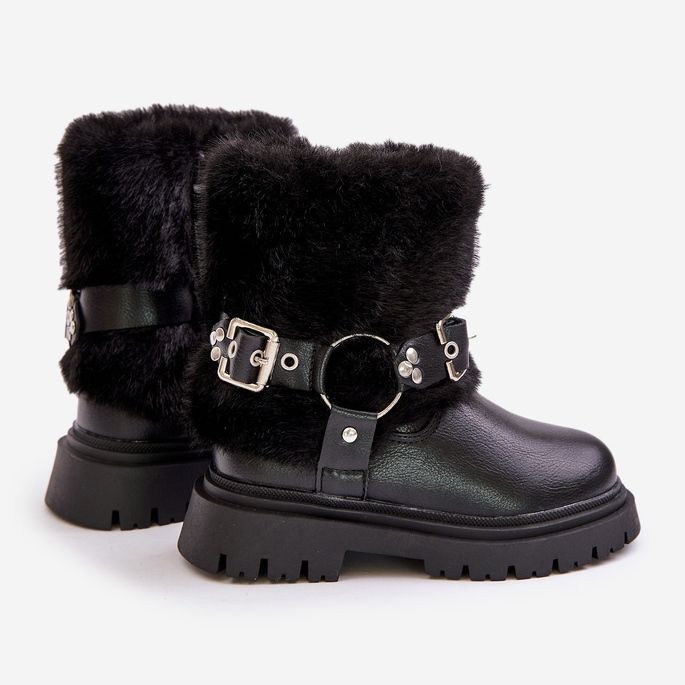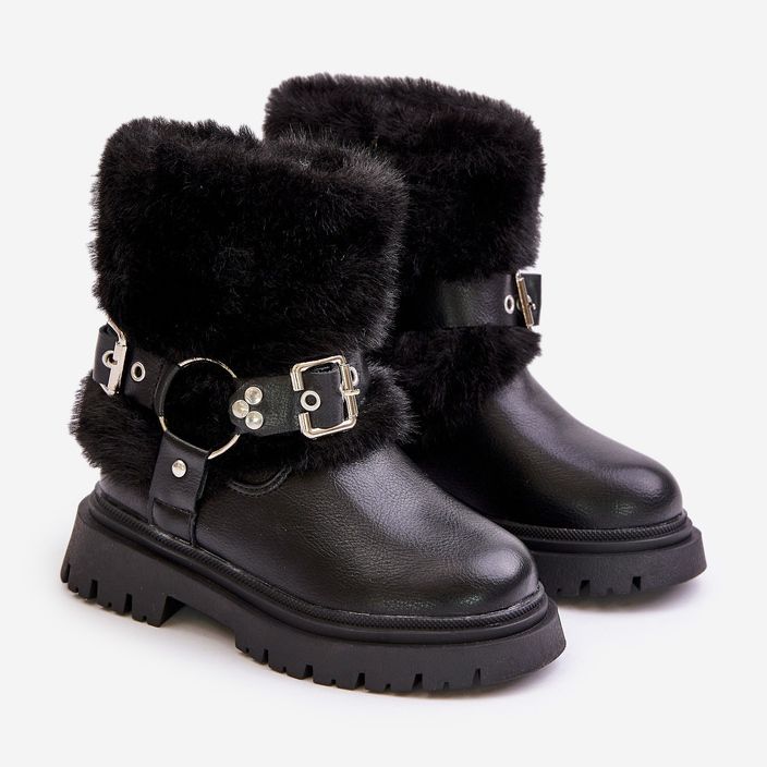 Details: Eco Leather Girls' Boots with Fur and Buckles, Black Cartemes