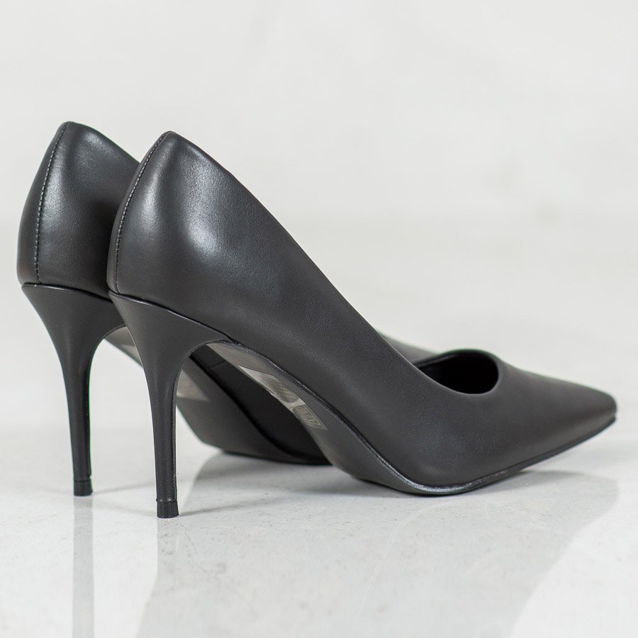 The high 9 cm heel not only provides an impressive look, but also optically lengthens the legs. A characteristic feature of these stilettos is a comfortable insert made of ecological leather, which makes walking in them comfortable, even for a long time. The round toe and the closed, stiffened heel additionally emphasize their classic design.
