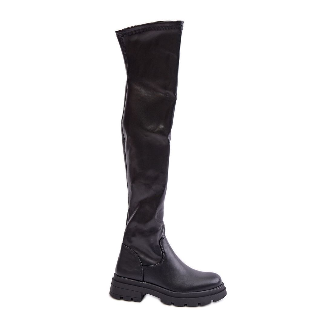 Inna marka Eco Leather Over-the-Knee Boots with Flat Heels, Black Santira
