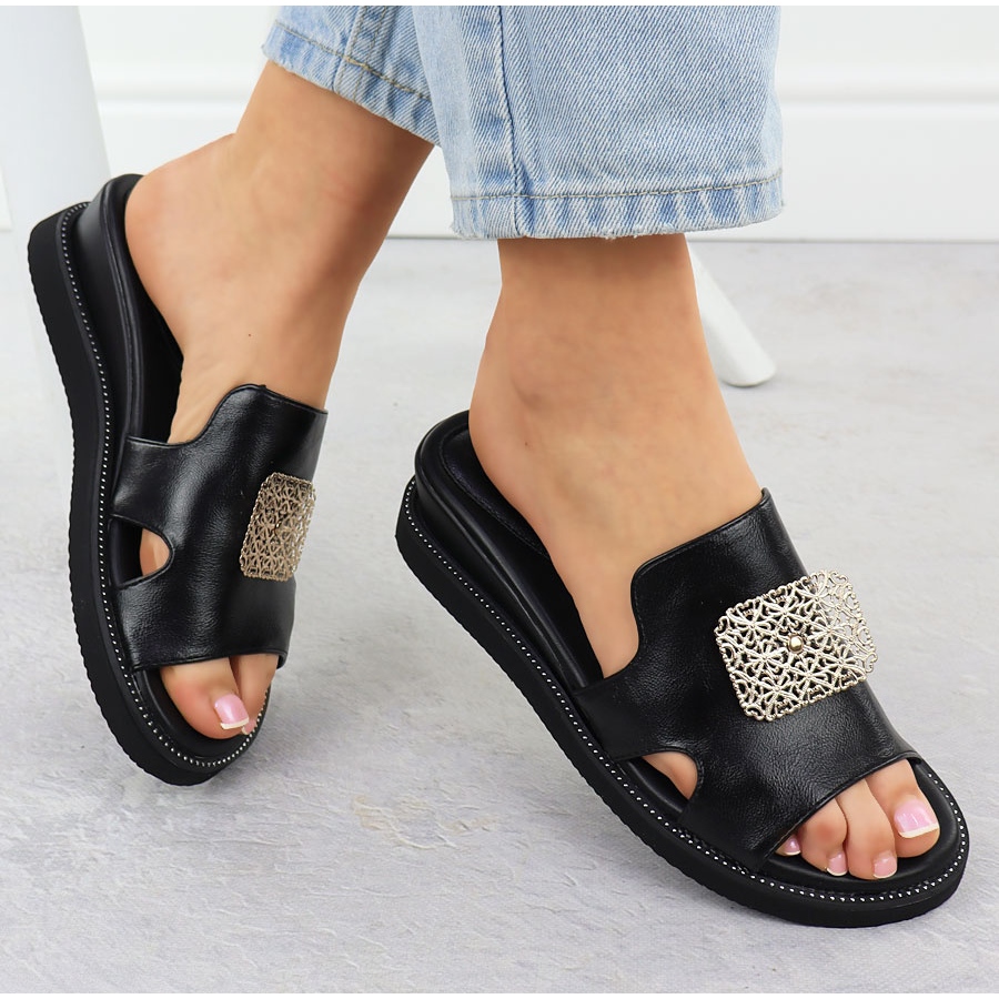 Details: Eco-leather slippers on the black platform with an ornament of Jezzi 2267