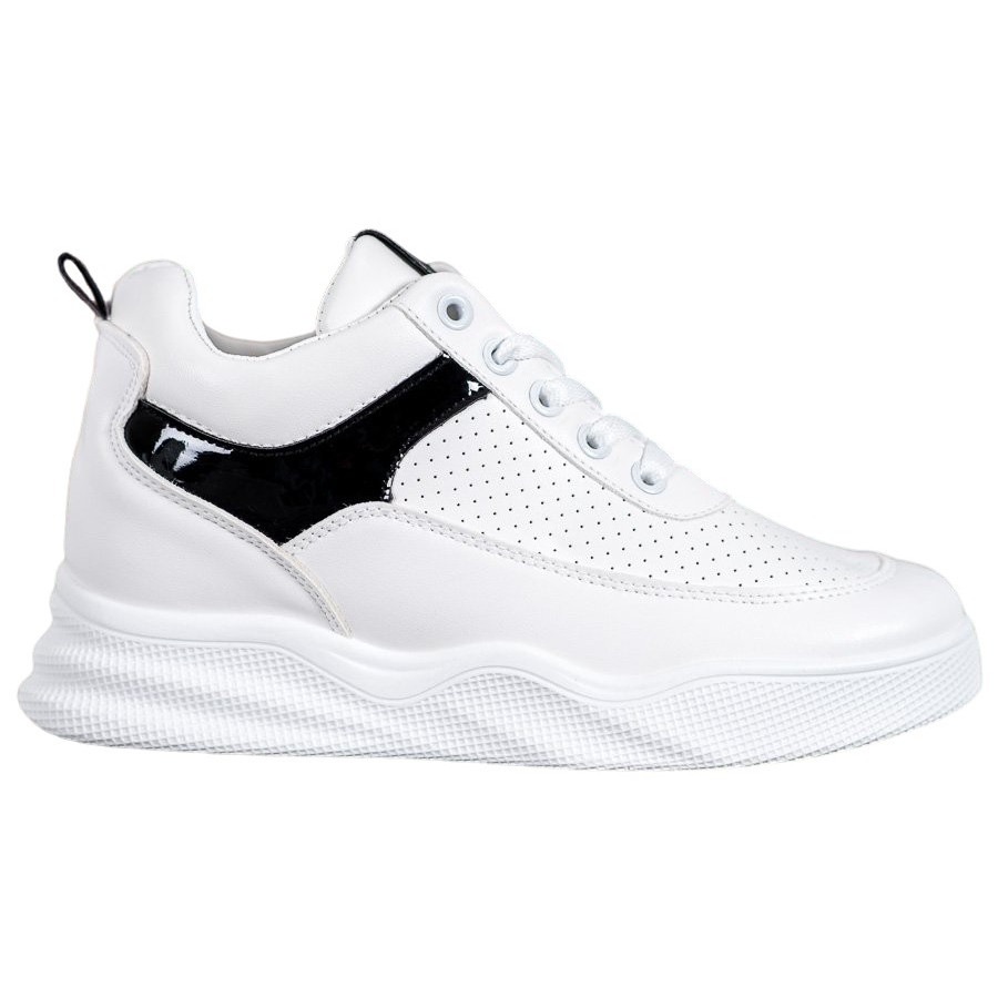 Renda sneakers made of eco-leather in white are a must-have in every woman's wardrobe. These stylish and modern shoes combine fashionable design with excellent comfort of wearing, which makes them ideal for both everyday and special occasions. Distinguished by an effective black, shiny strap, the sneakers attract attention and add a unique character to every styling.