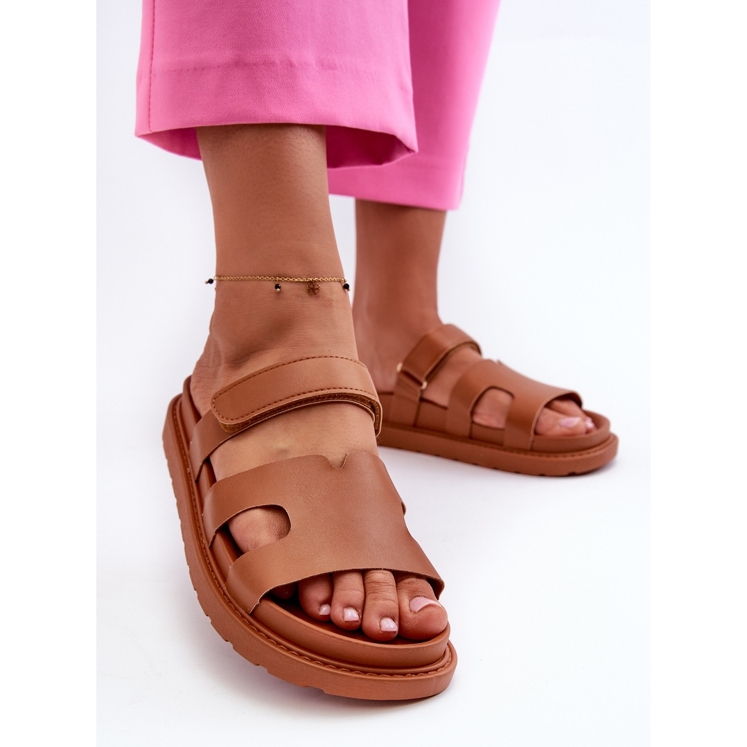 Details: Eco Leather Women's Velcro Flip-Flops Camel Silaka brown
