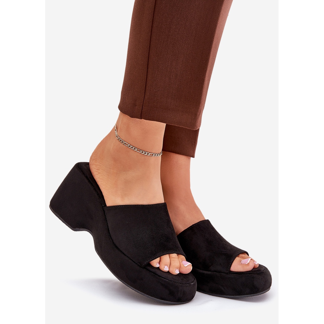 Inna marka Eco suede women's slippers on the platform and black wedges