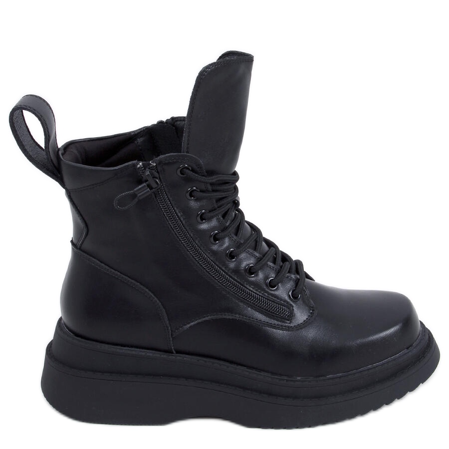 Discover chic and comfort with the Edvin Black high-sole ankle boots, which perfectly match current trends. These stylish lace-up workers in classic black are a must-have in every woman's wardrobe. The high sole, 6 cm high, will not only add centimeters to you, but will also make your stylizations take on an unforgettable character.