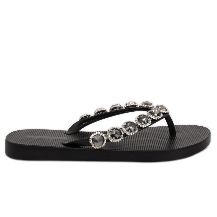 Inna marka Elegant black flip-flops with stones JH69 Black