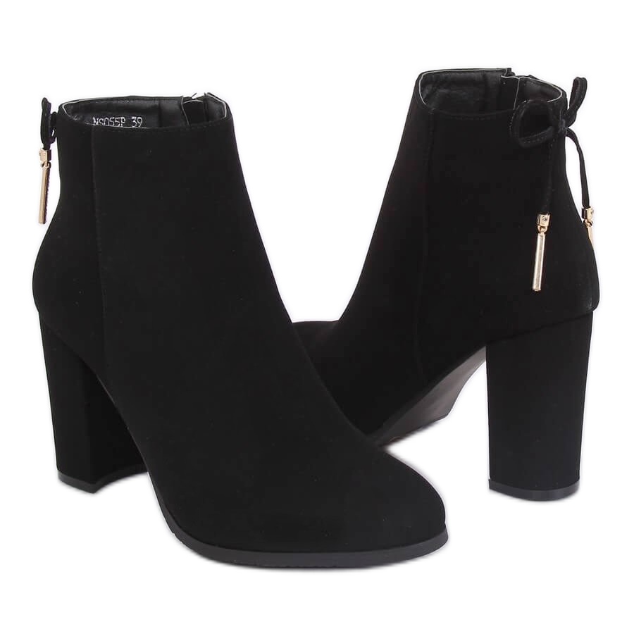 Elegant black NS055P Black high-heeled ankle boots are a must-have for every stylish woman who values comfort and elegance. Made of high-quality, matte ecological nubuck, these ankle boots attract attention with their minimalistic yet sophisticated design. The classic black color makes them universal and perfectly matches various styles - from casual to more elegant.