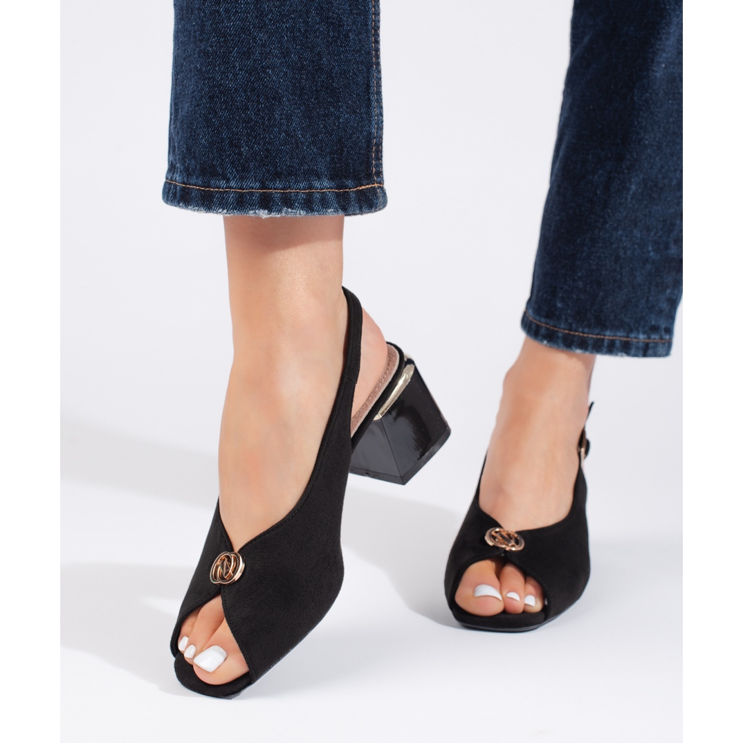Discover elegance and style with suede high heels from another brand! These black sandals are an excellent choice for evening outings, events and unique celebrations. Made of ecological suede, they look extremely chic and are also environmentally friendly.