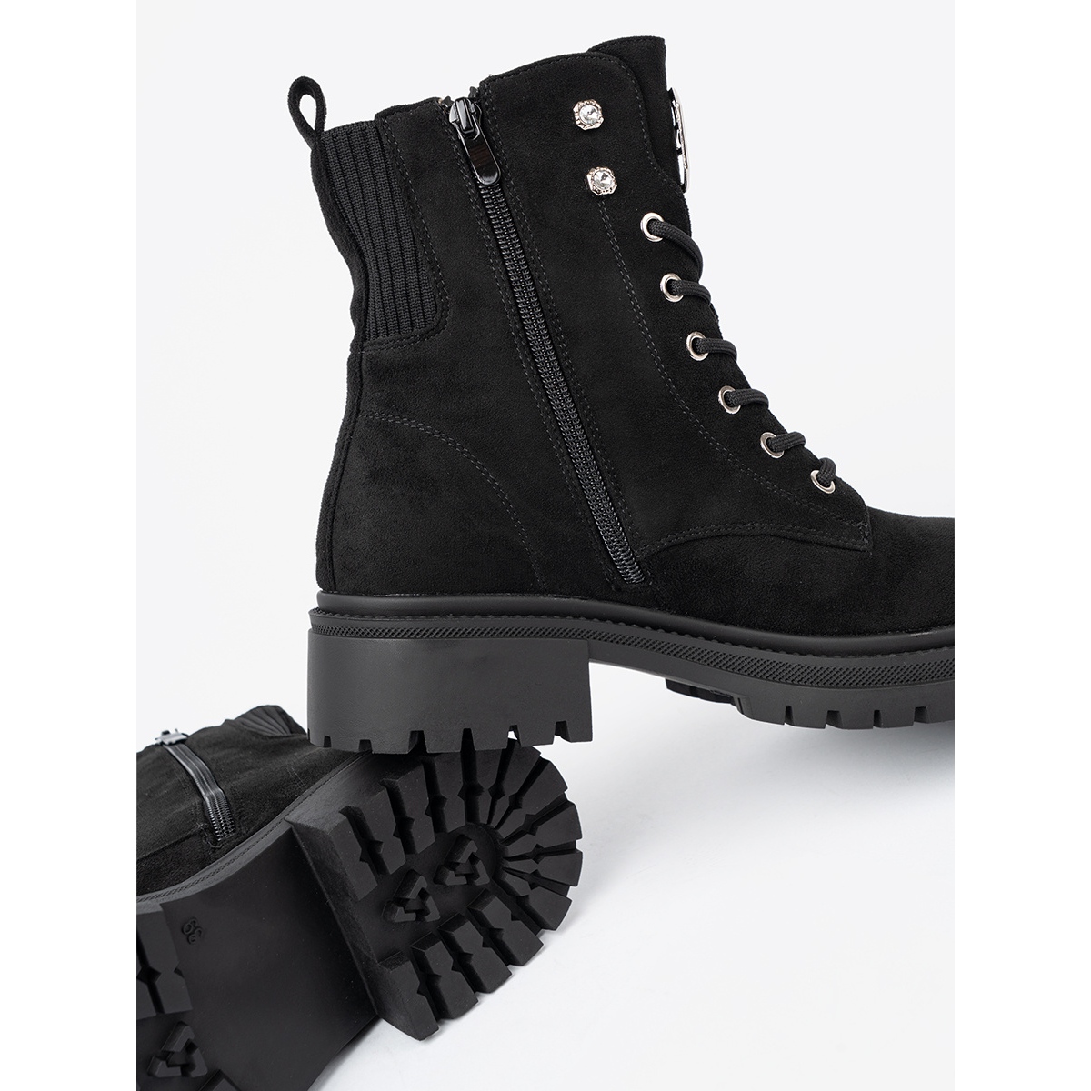 Made of high -quality ecological suede leather, these workers attract attention with shiny crystals that give them some splendor. Thanks to the built -in and stiffened fastening, they provide not only a fashionable look, but also comfort and stability when wearing. A round nose and a high -quality textile insole guarantee comfort of use, even on cooler days, and insulation makes your feet protected from cold.