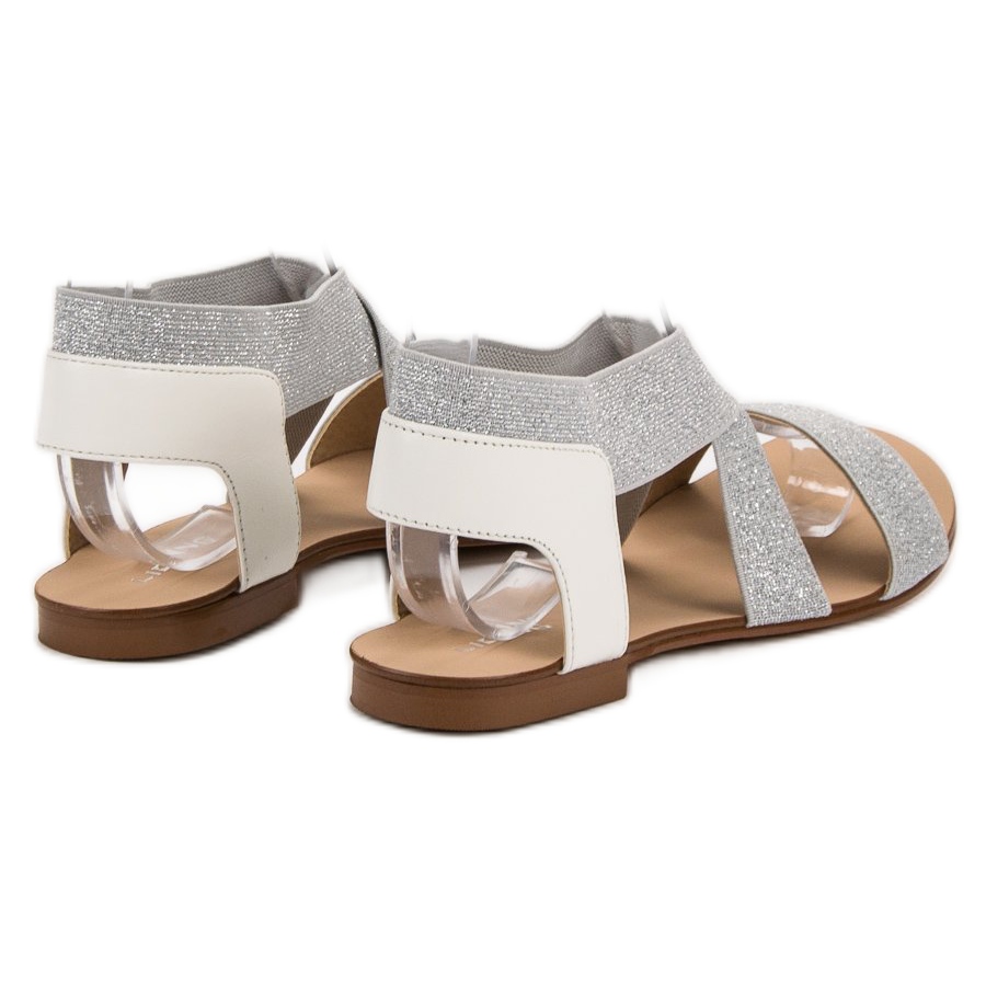 Discover elegance and comfort with the SHELOVET sandals in a beautiful grey colour. These incredibly feminine flat sandals are characterised by a combination of silver and white elements, which give them a modern, stylish look. A white, wide strap made of eco-leather gently supports the upper on the heel, ensuring comfort of wearing all day long.