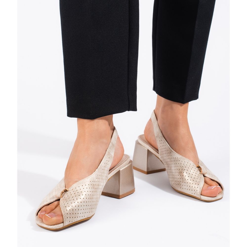 Discover elegance and style with Goodin sandals in golden color, which will perfectly complement every evening stylization. These unique women's sandals on the post are perfect at celebrations, events and all important opportunities where you want to shine.