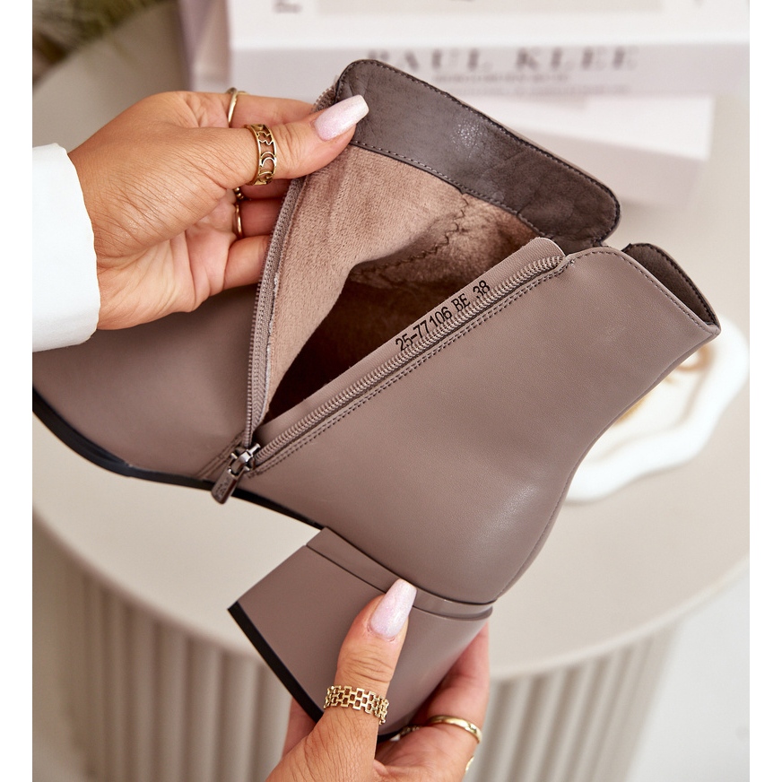 Details: Elegant Insulated Women's Ankle Boots Made of Natural Leather Beige Vinceza 77106