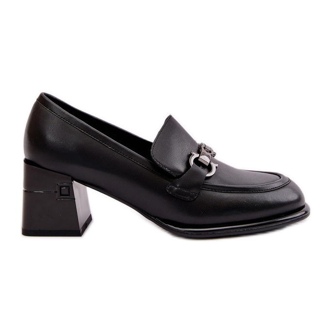 This model is characterized by a rounded nose, which emphasizes its elegant appearance. An additional advantage is the decorative chain, which gives the shoes a subtle, fashionable accent. Black shoes blend well with various stylizations - from casual to more formal, thanks to which they are a practical element of every wardrobe.