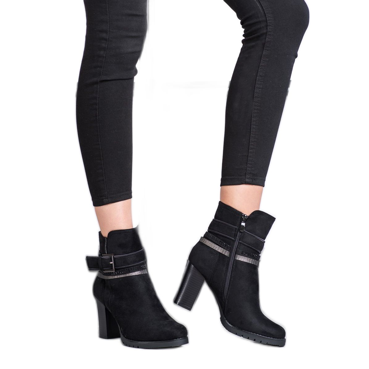 An additional advantage of these boots are subtle details, such as a decorative strap with an elegant buckle and zircons, which add a unique character to them. The zipper fastening ensures easy putting on and taking off, and the stiffened heel affects the stability and safety while walking.