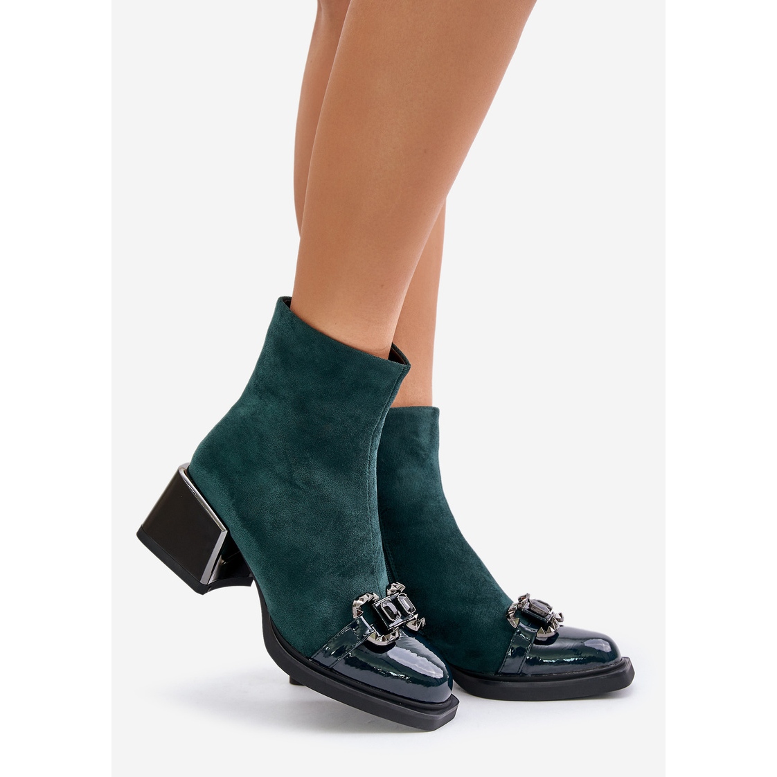 Details: S.Barski Elegant Women's Ankle Boots With Heels With Decoration Dark Green MR880-127