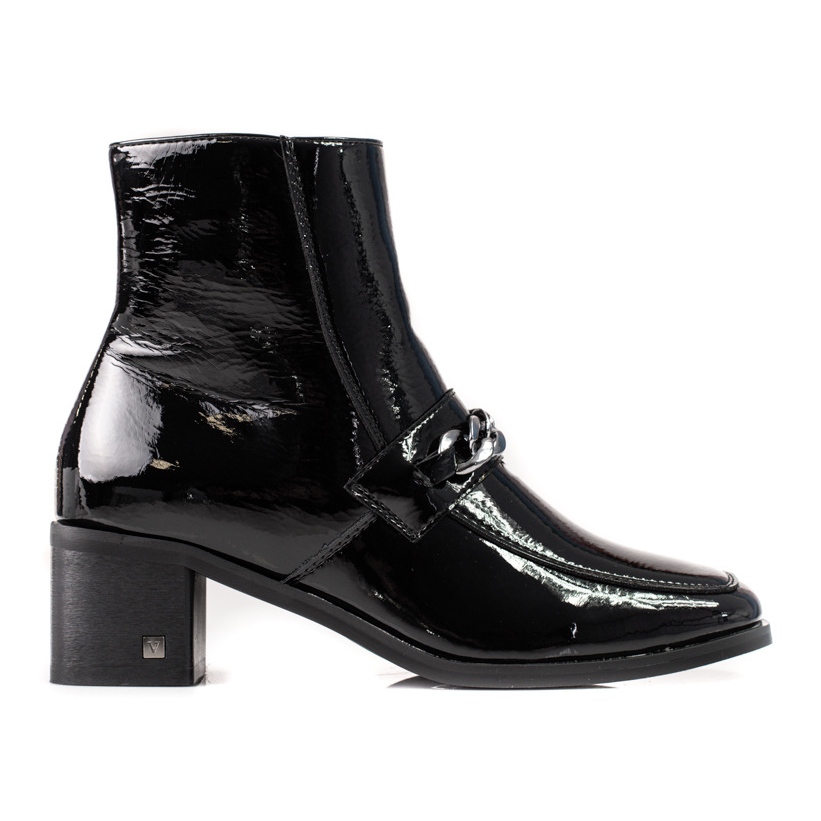 Elegant women's ankle boots with a low heel from the Vinceza brand are the perfect choice for women who value classic combined with modern style. In black, made of patent eco-leather, these ankle boots will perfectly fit into any wardrobe, adding chic and elegance to both everyday styles and special occasions.