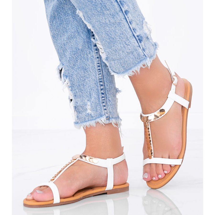 Discover Emmie white women's sandals - the quintessence of summer style and comfort! These unique sandals, made of high-quality ecological leather, combine elegance and functionality. They are characterized by an original design with an attractive application of gold plates, which gives them a unique charm.