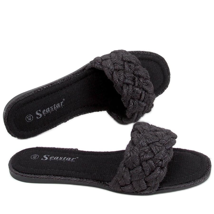 Discover summer style with Erika Black women's string slides! These elegant flat slides are the perfect choice for hot days. The black, smooth finish makes them match many summer styles, and the linen-braided strap adds an original character.