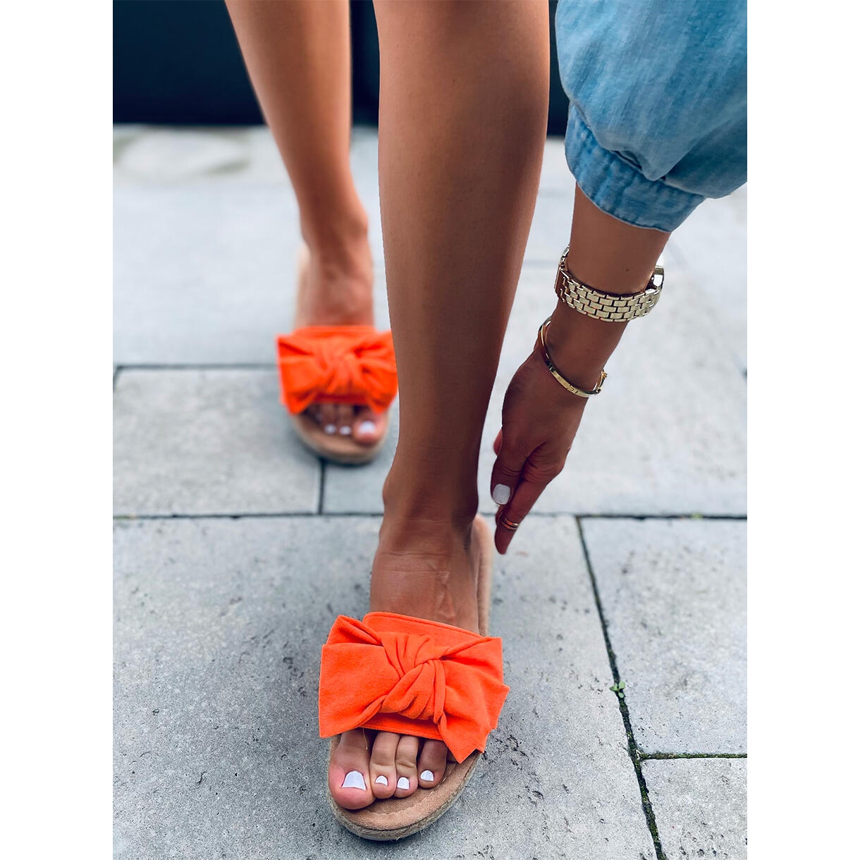 Details: Espadrilles with a Viola Orange bow