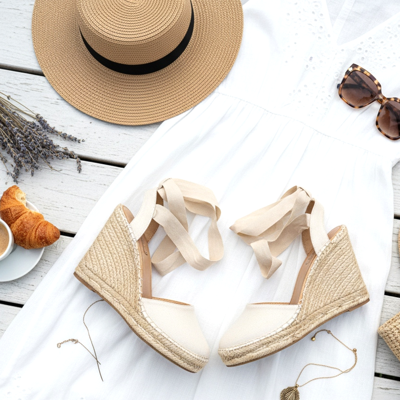 Wedge espadrilles are the favorite summer shoes of French women. They are comfortable, stable and match any dress. We show you how to wear and tie them to slim your legs.