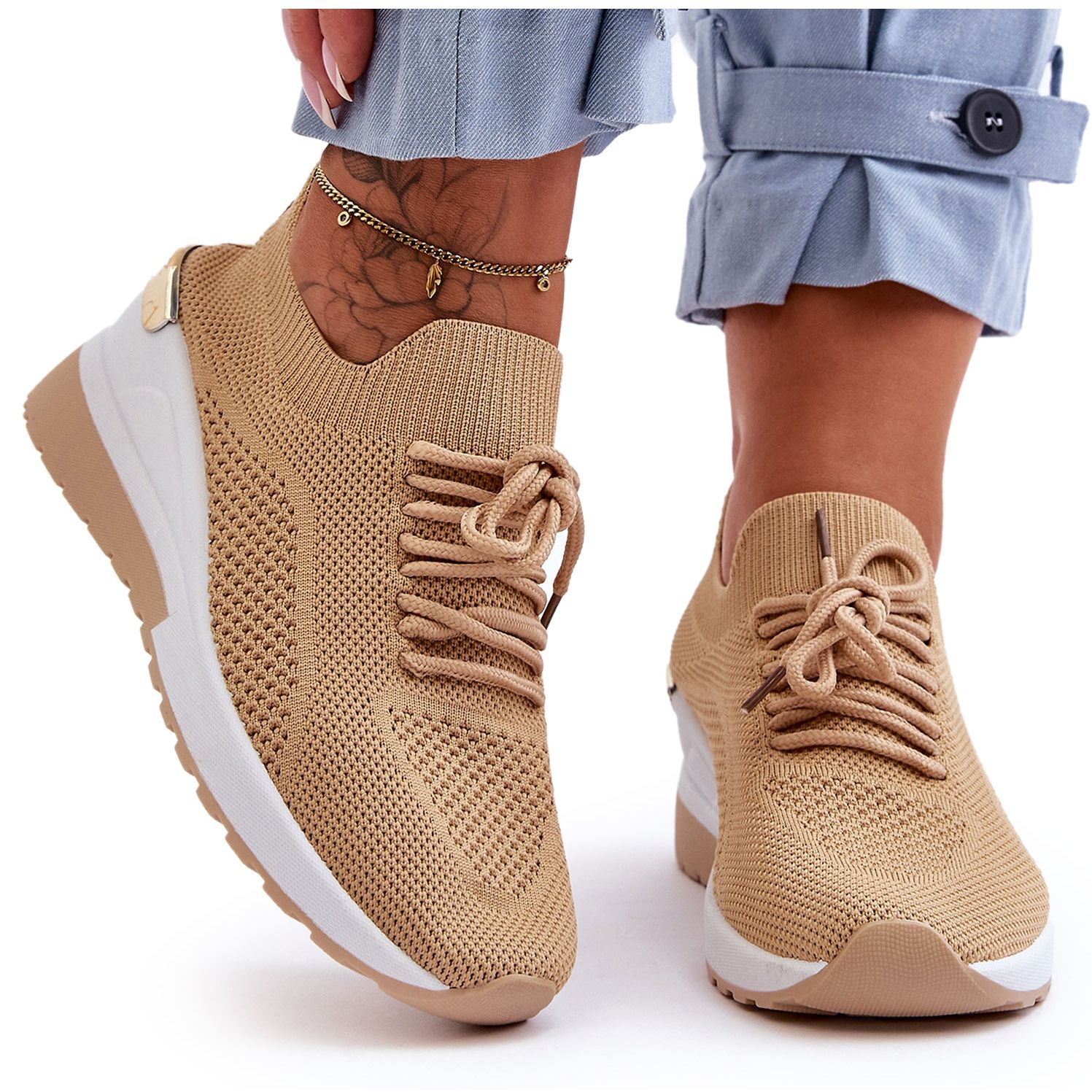 PG1 Material Slocked Sports Shoes for wedge - beige (khaki) with the addition of gold
