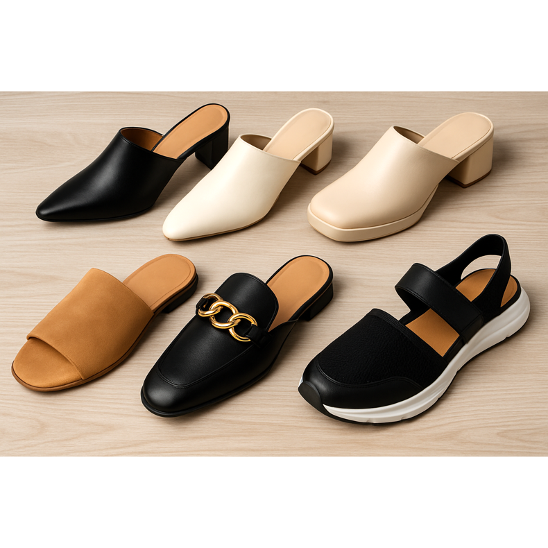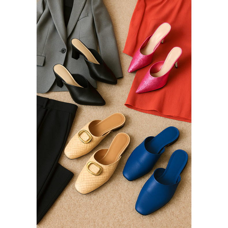 The universality of the mussels makes them work in various professional situations. For important business meetings, choose classic mussels on a stable heel in a subdued color - black leather mules with a delicate spitz will add professionalism to any stylization. During the presentation, when you have to stand a lot, put on mussels on a lower heel or platform that will ensure stability and comfort. Every day in the office mussels on a flat sole or a small heel are great - you can afford more color or gentle decorations. Networking events are an opportunity to show your style - mules with interesting details, such as metal clamps or braided elements, will be a great Conversation Starter. For company after work, you can choose bolder models - mussels on a higher heel, with sequins or in intense colors. Remember about the spare pair of shoes in the office - if the mules are uncomfortable during a long day, you can change them. It is also worth having a footwear care kit in the desk drawer so that the mules always look impeccable.
