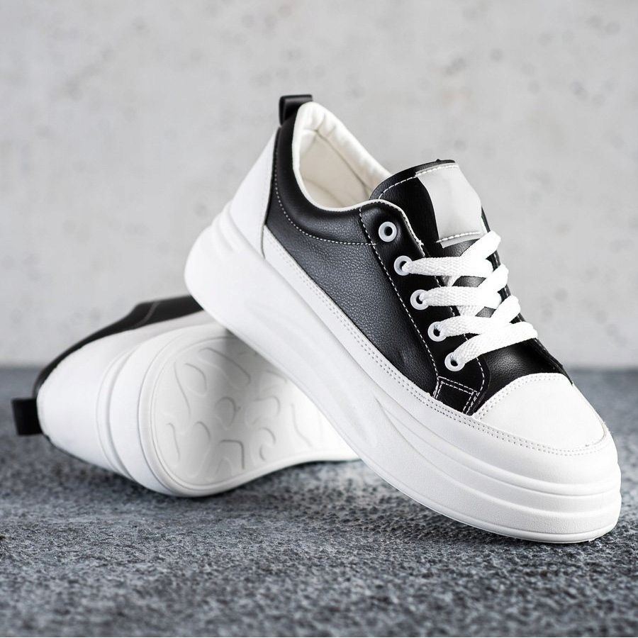 We present fashion sneakers on a platform from the SHELOVET brand - an ideal choice for women who value fashionable design and comfort. These stylish black sneakers, made of high-quality imitation leather, perfectly fit into current trends, combining sporty style with elegance.