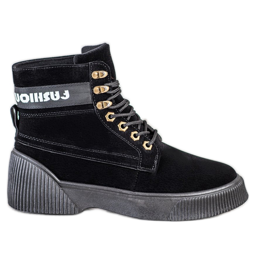 Made of high-quality ecological suede leather, the boots are characterized not only by their fashionable appearance, but also by their durability. The insulation makes the feet stay warm, regardless of the weather conditions. The round toe and the closed, soft heel guarantee comfort of wearing, and the flat 3 cm heel makes them ideal for everyday styling.