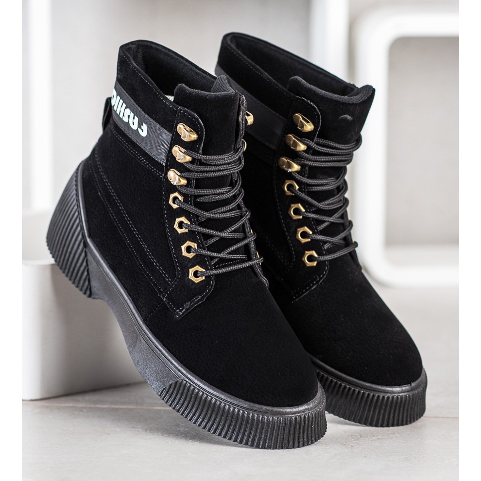 Weide boots have a lace-up closure, which allows for a perfect fit to the width of the foot, and the width of the upper of 24 cm provides additional comfort. The height of the upper of 9-10 cm emphasizes the feminine and elegant look, and their universal black color makes them match many outfits.