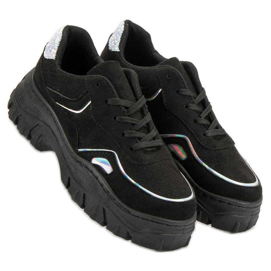 The medium-height 5-centimeter platform in a juicy black color perfectly absorbs shocks, providing comfort during long walks. What's more, delicate glitter and shiny inserts give them a unique character, making them a perfect addition to any sports styling.