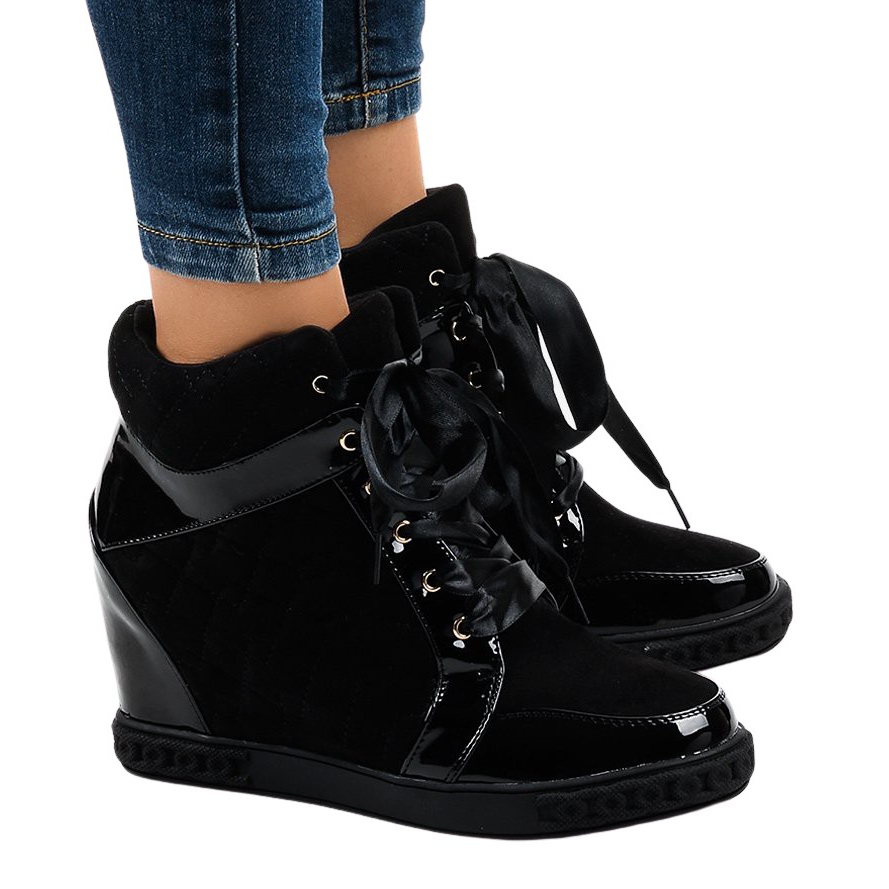 Inna marka Fashionable black wedge sneakers KLS-109-3
