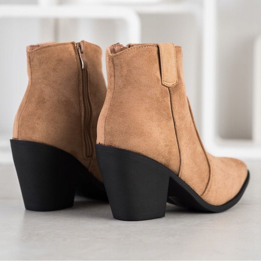 Made of ecological suede leather, the boots stand out not only for their aesthetic appearance, but also for their durability and comfort of wearing. The classic design makes them a perfect match for both everyday and evening outfits. Thanks to the pointed toe and 8.5 cm high block heel, they will be the perfect addition to trousers, dresses and skirts.