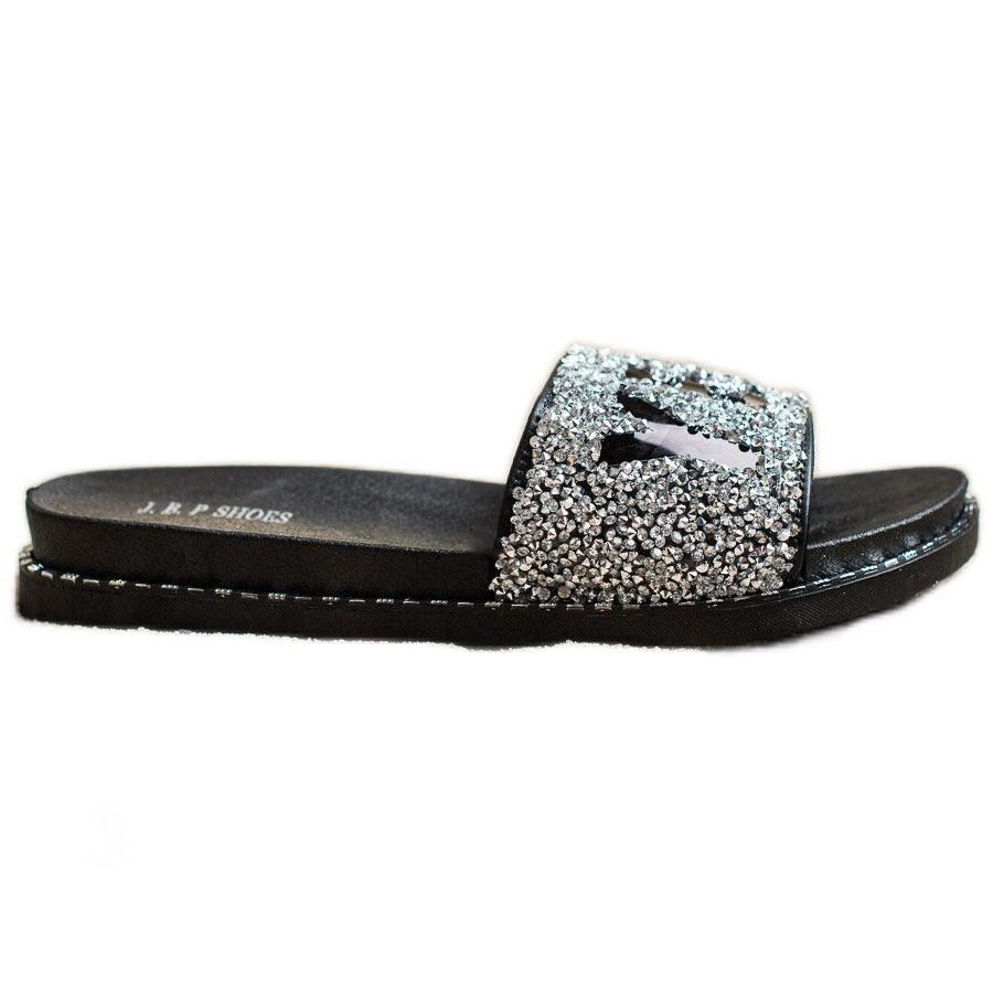 SHELOVET SHELOVET Fashionable flip-flops with crystals black silver