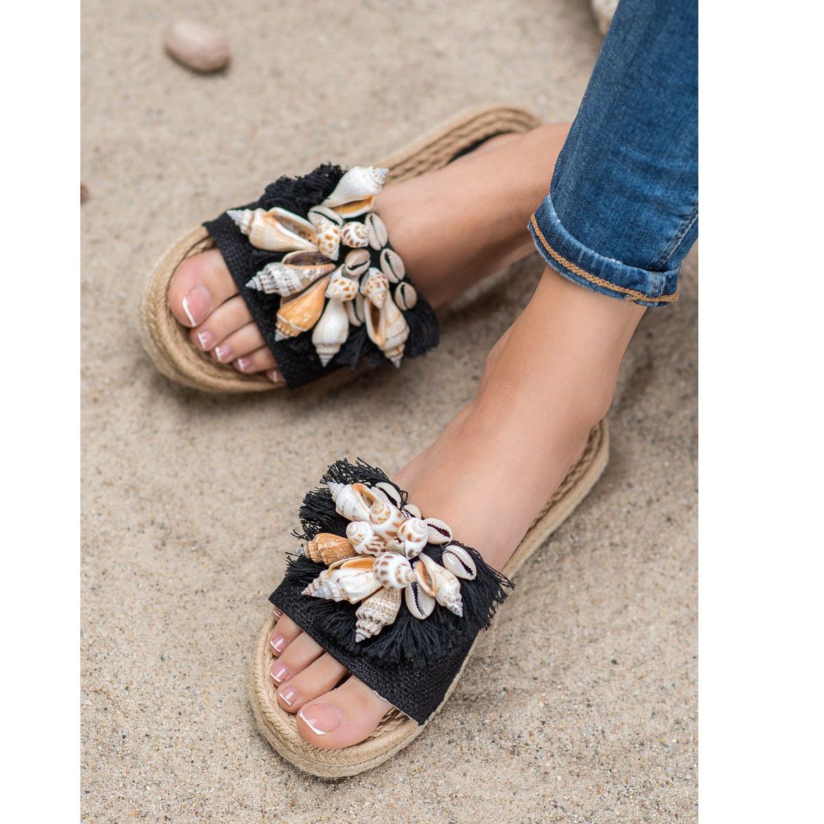 The fashionable Seastar flip-flops with shells are a must-have for summer days and evenings. These unique black flip-flops combine elegance and a loose casual style, perfectly matching the holiday climate. Thanks to the spectacular shells, the flip-flops attract attention and add character to any styling.