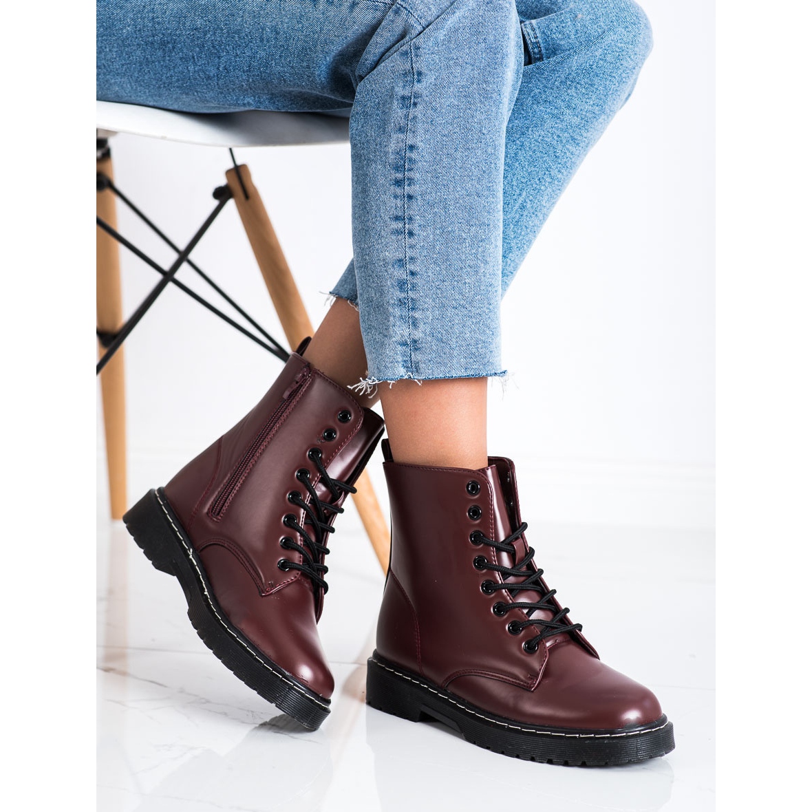 Discover extraordinary style and comfort with fashionable SHELOVET lace-up ankle boots in a beautiful red color! These elegant ankle boots are a great choice for fall and winter, perfectly fitting into a casual style.