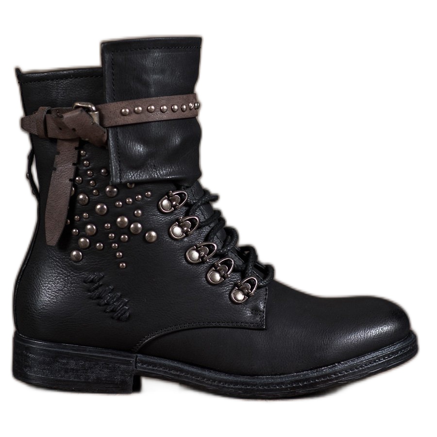 Discover ankle boots that combine elegance with rock style - Super Me Fashion Lace-up Ankle Boots in black are the perfect choice for colder days. Made of high-quality ecological leather, these shoes not only look beautiful, but are also environmentally friendly.