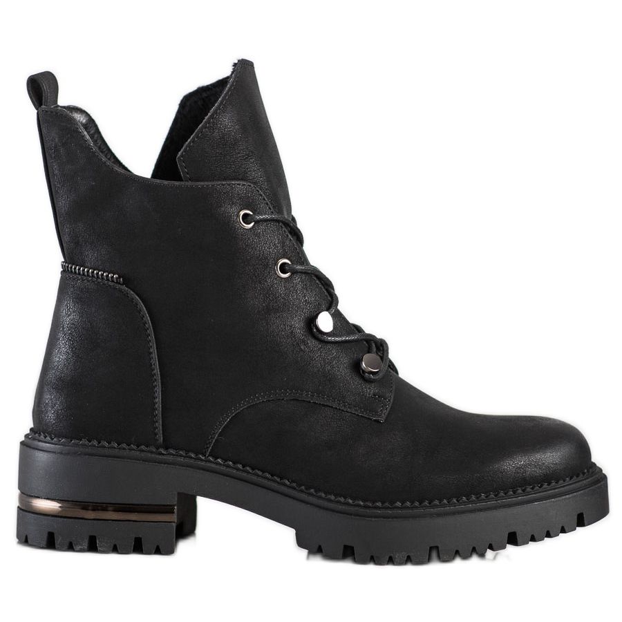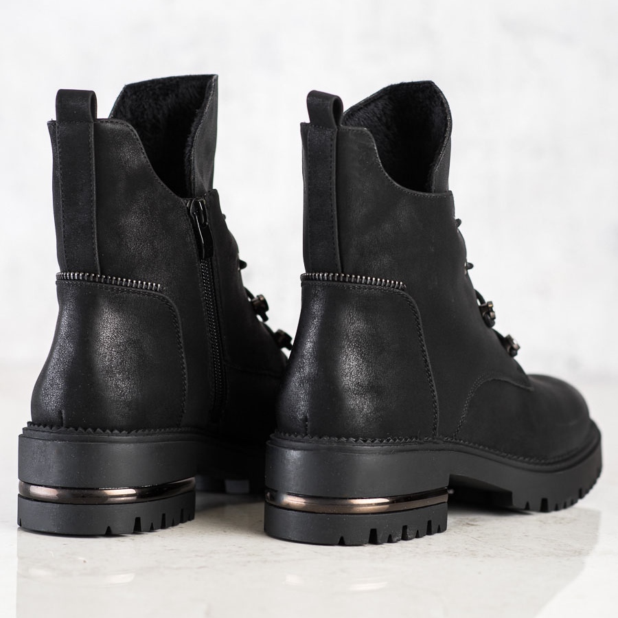 Available in a fashionable, patternless black color, they will be a great addition to any wardrobe. The 15 cm high upper reaches above the ankle, which adds character. Additional advantages include a practical zip fastening and lace-up fastenings, which allow for a perfect fit to the foot.
