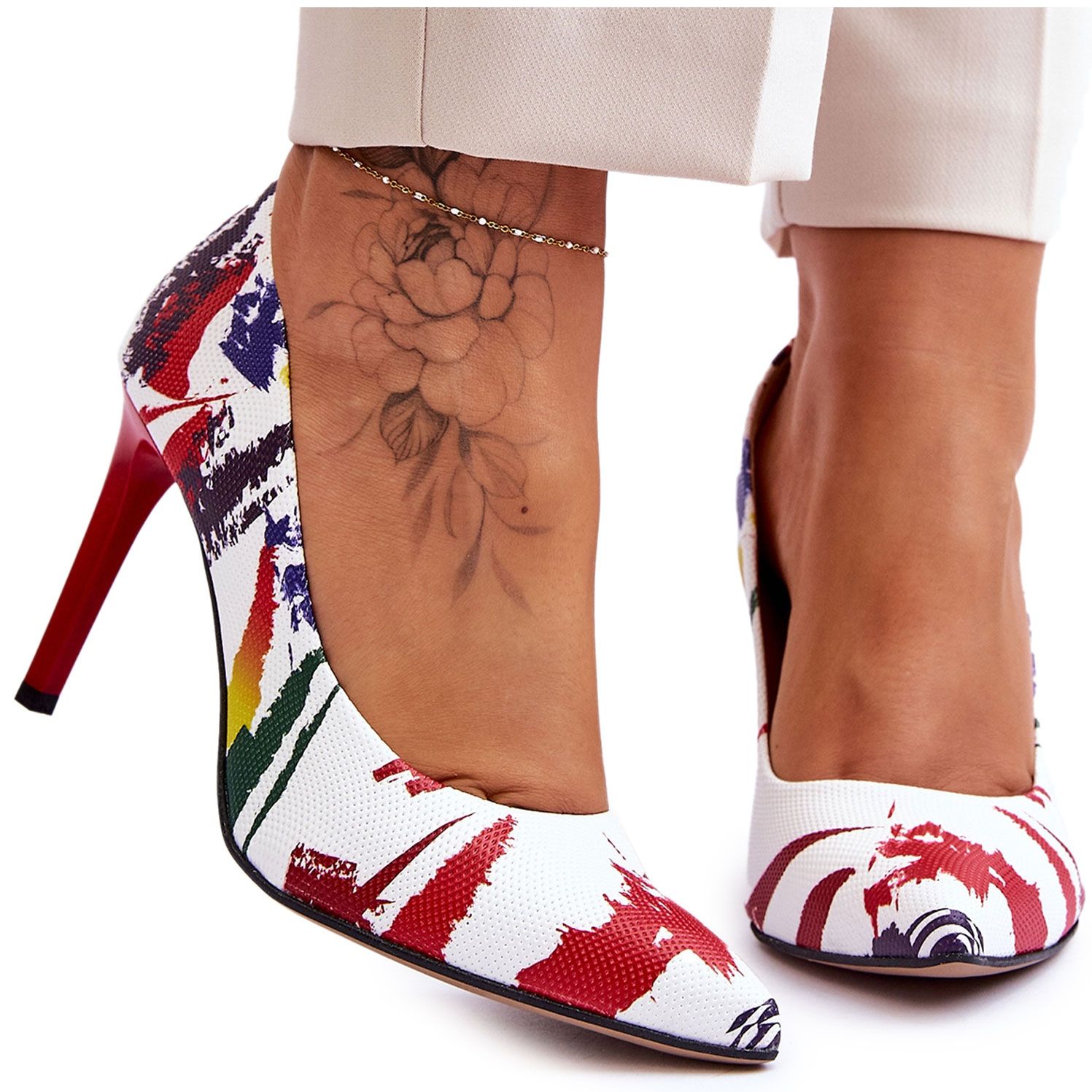 Fashionable Leather High Heels Lewski Shoes 2659 in white and red is a proposal that will delight even the most demanding lovers of elegance. These stylish pumps set on a slim heel in the form of a stiletto are a guarantee of an effective silhouette and self-confidence. Made of high-quality natural leather, they combine comfort of wearing with a fashionable design.