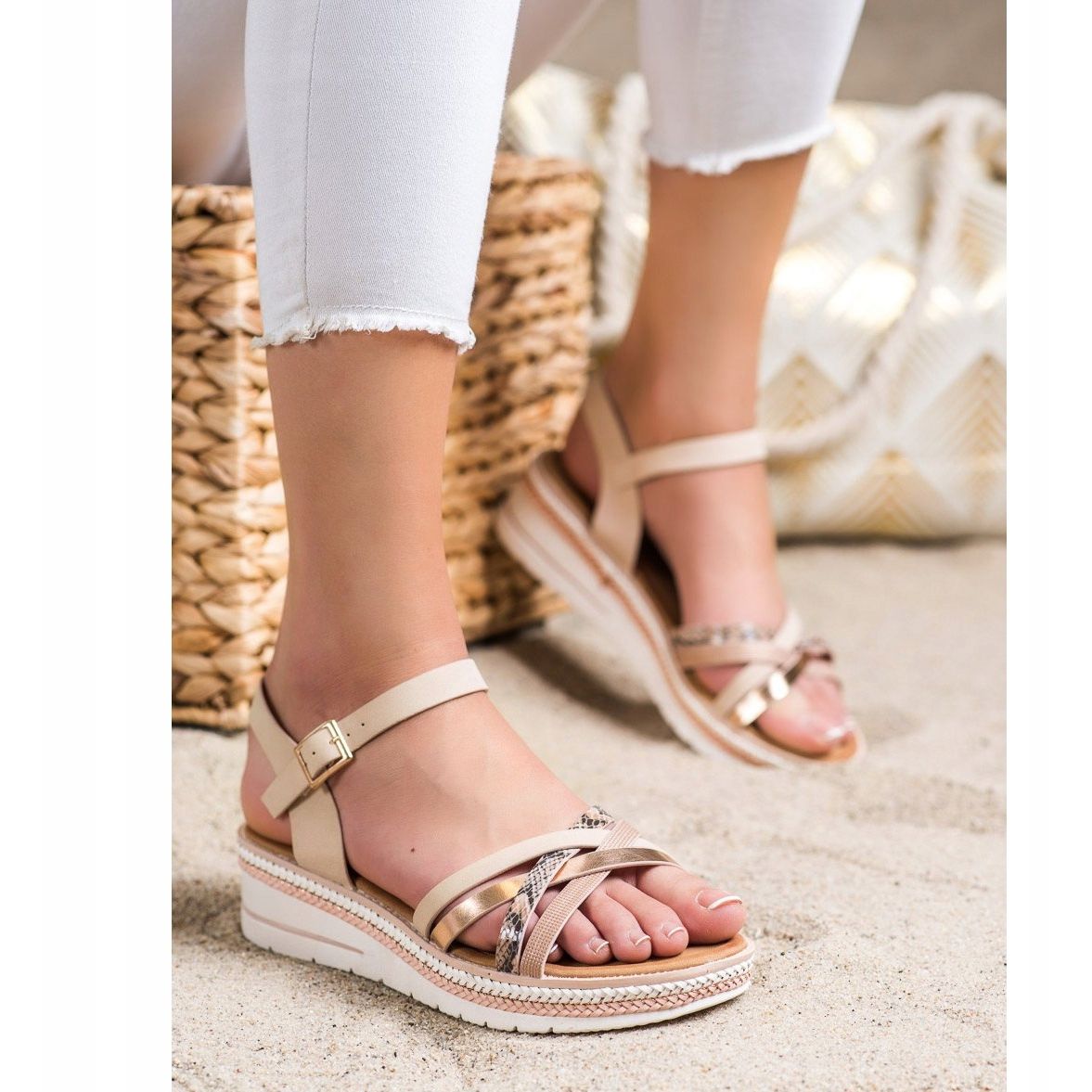 Details: Groto Gogo Fashionable sandals on a low wedge beige pink